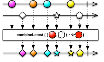 각각 Observable에 데이터가 생성 될 때 데이터를 조합해서 전달한다.