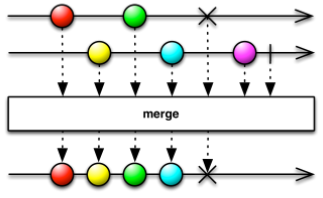 여러 개의 옵저버블을 합쳐서 한 개의 옵저버블로 만든다.