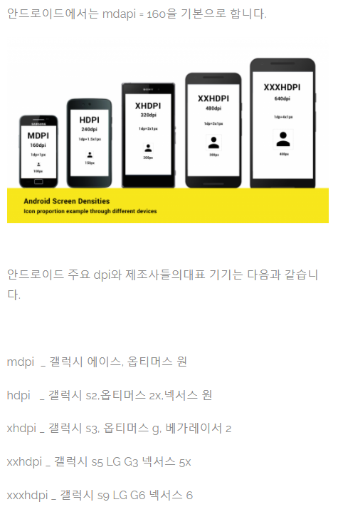 출처: https://boxfoxs.tistory.com/365 [박스여우 - BoxFox]Android - dp, 다양한 해상도 지원하기