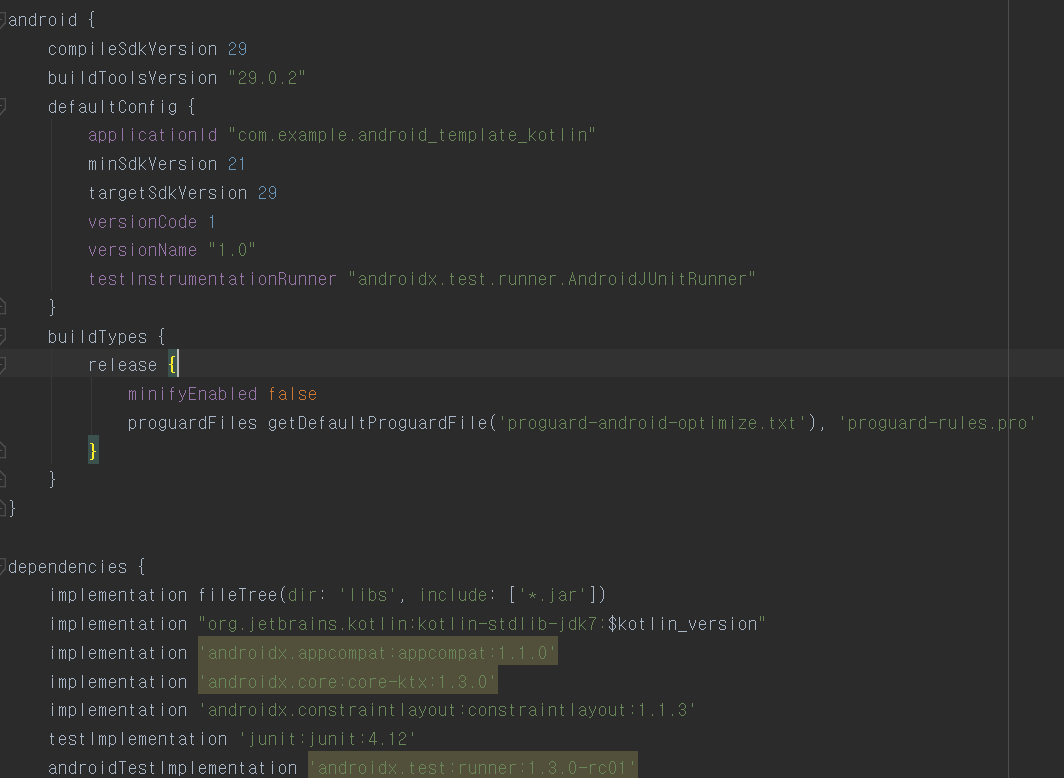 - compileSdkVersion은 앱 컴파일시 사용할 SDK 버전을 지정합니다.